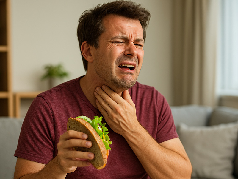 • الشعور بأن الطعام عالق خلف عظمة صدرك